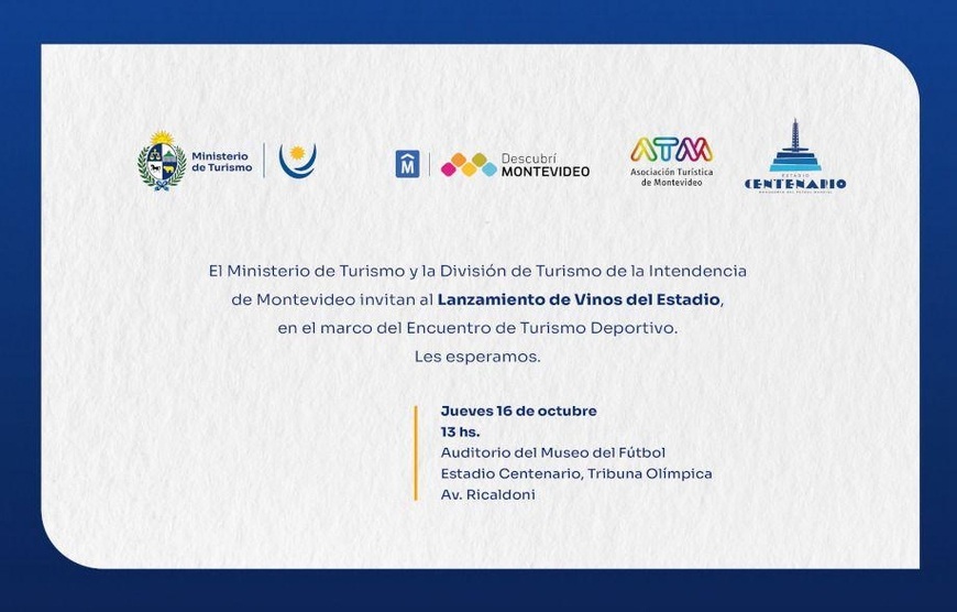 En el marco del Encuentro de Turismo Deportivo organizado por el Ministerio de Turismo y la División Turismo de la Intendencia de Montevideo, el próximo jueves 16 de octubre, a las 13:00 hrs, en el auditorio del Museo del Fútbol del Estadio Centenario, se realizará el lanzamiento de “Vinos del Estadio Centenario”.