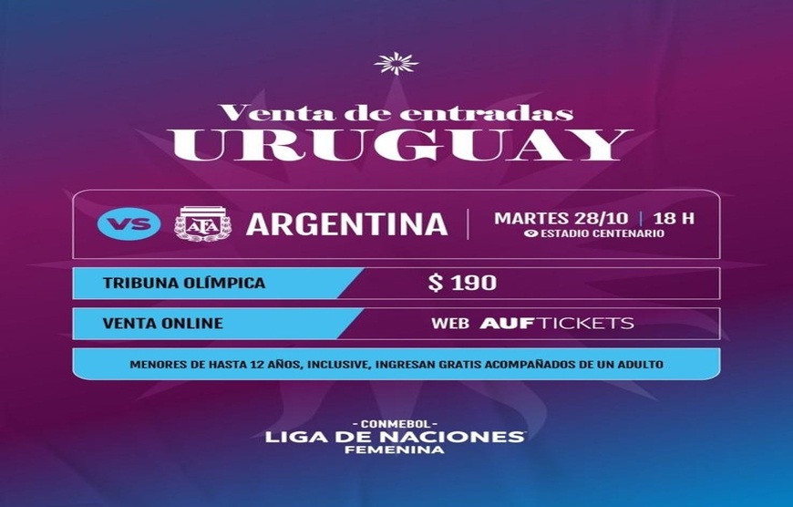 O Uruguai enfrenta a Argentina na segunda rodada da Liga das Nações Feminina da CONMEBOL, na terça-feira, 28 de outubro, às 18h, no Estádio Centenário.
